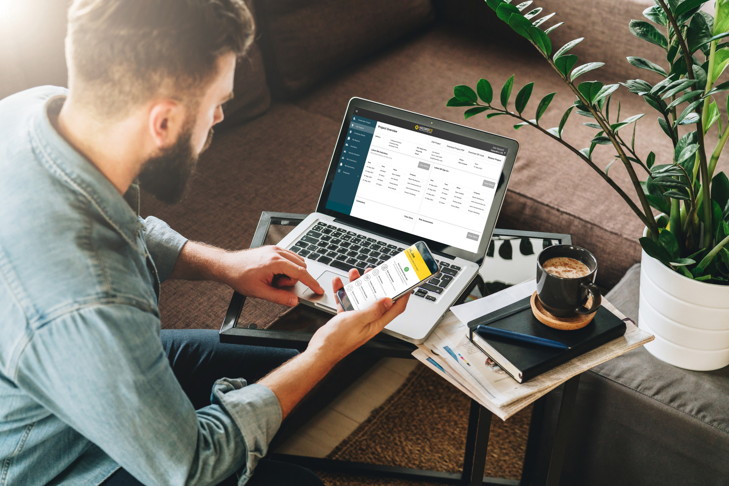 Along with the app, being a HazardCo member also gives you access to the HazardCo Hub – our digital tool for setting up new projects. All of the information you need is stored online meaning that you can login from anywhere, at any time. Plus, you can use the hub to view, download, and review activity reports, including site reviews, risk assessments, and inductions.